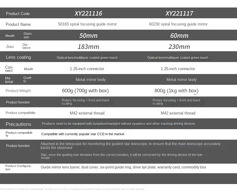Product function: Attached to the telescope for monitoring the guiding star telescope, ensuring that the main telescope accurately tracks the observed celestial body. Once the guiding star deviates from the correct position, it is corrected through the driving device of the telescope