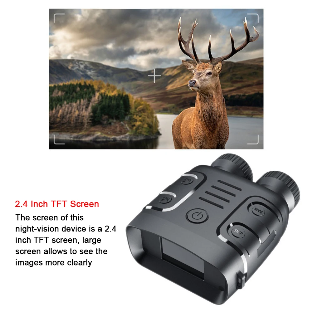 2.4 Inch TFT Screen: The screen of this night-vision device is a 2.4 inch TFT screen, large screen allows to see the images more clearly.