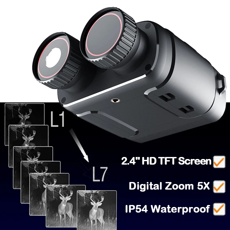 1080P Binocular Infrared Night-Visions Device 5X Binocular Day Night Use Photo Video Taking Digital Zoom for Hunting Boating