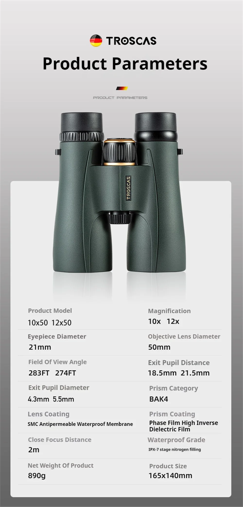 12X50 Outdoor HD ED Binocular Telescope SMC Coating Birdwatching Mirror Professional Waterproof Binoculars for Hunting Camping