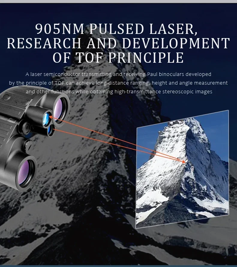 Built for Durability and Safety: Constructed with durable materials of PC and fiberglass, these binoculars are IP65 waterproof rated and designed for outdoor use. With Class 1 safety level and safety measures for the 905nm laser, they provide a safe and reliable experience for users.