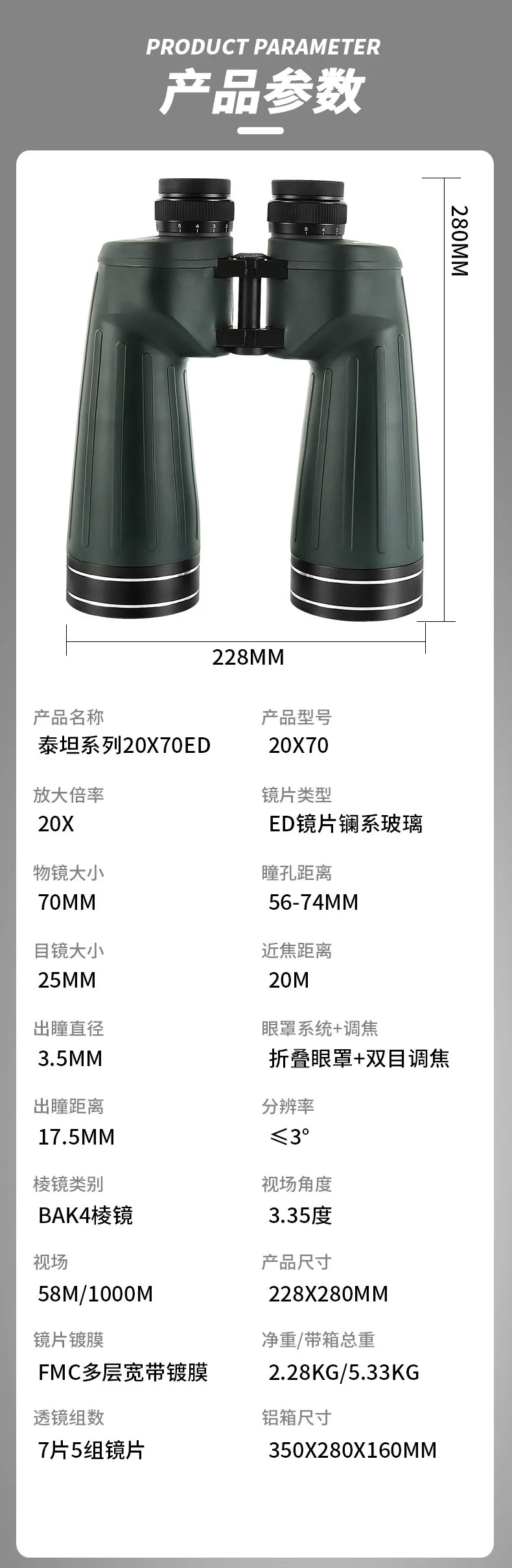 Angeleyes Titan 20x70ED Binoculars High-Definition High-Magnification Observation Stars and Outdoor Concerts