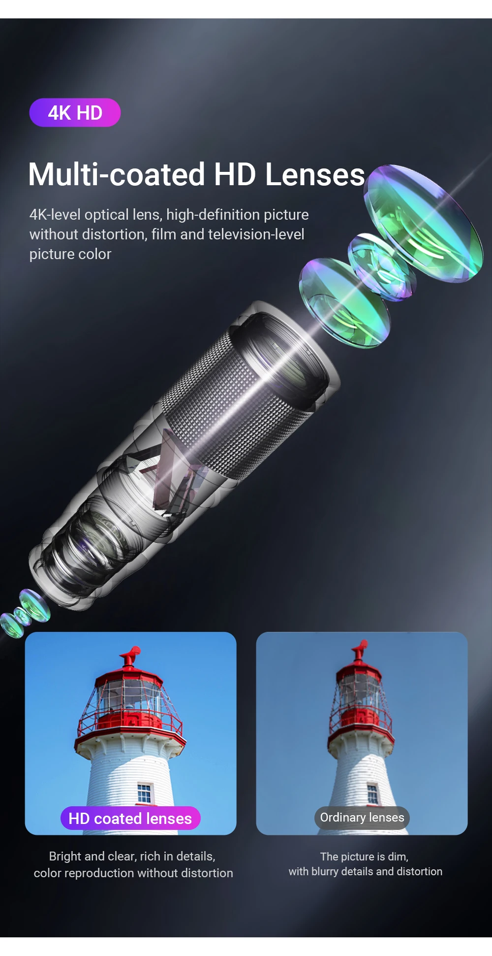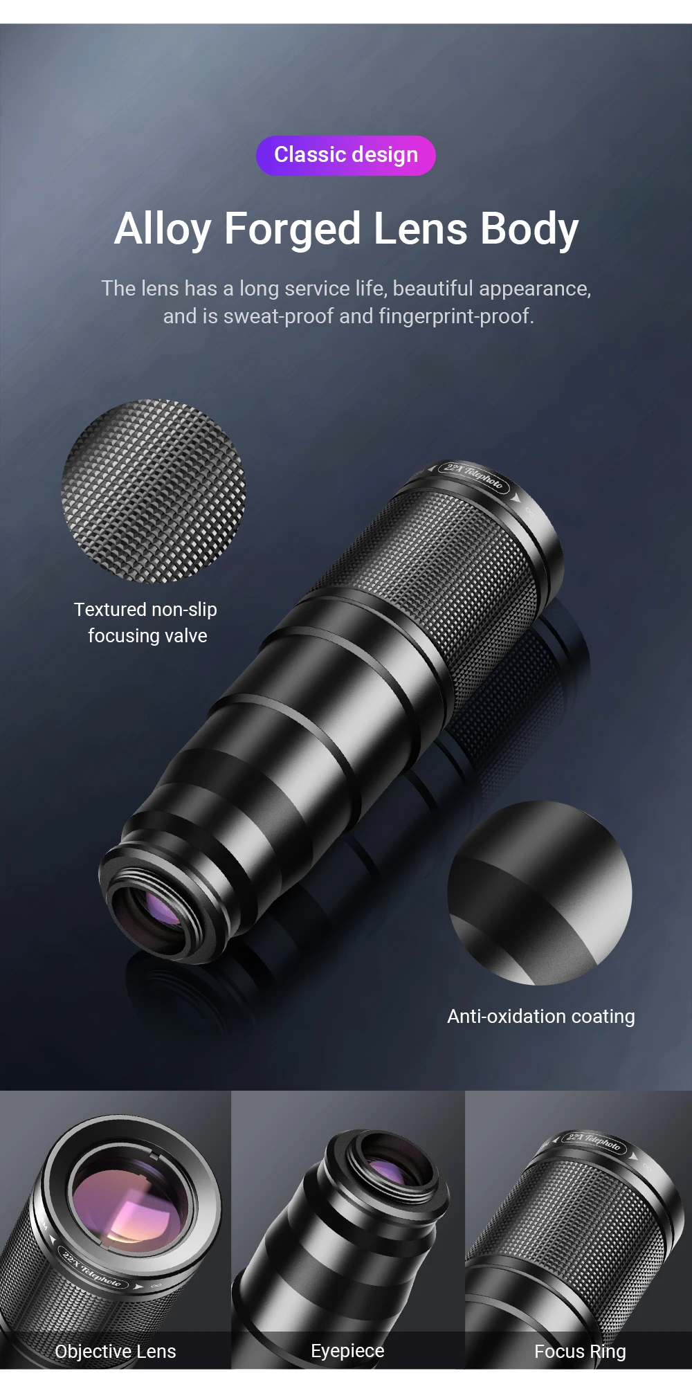 Lens material: optical glass + aluminum alloy