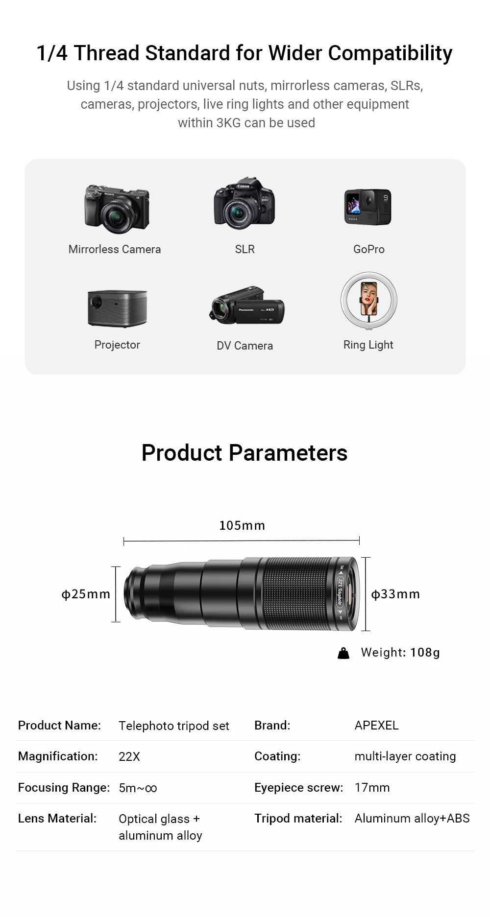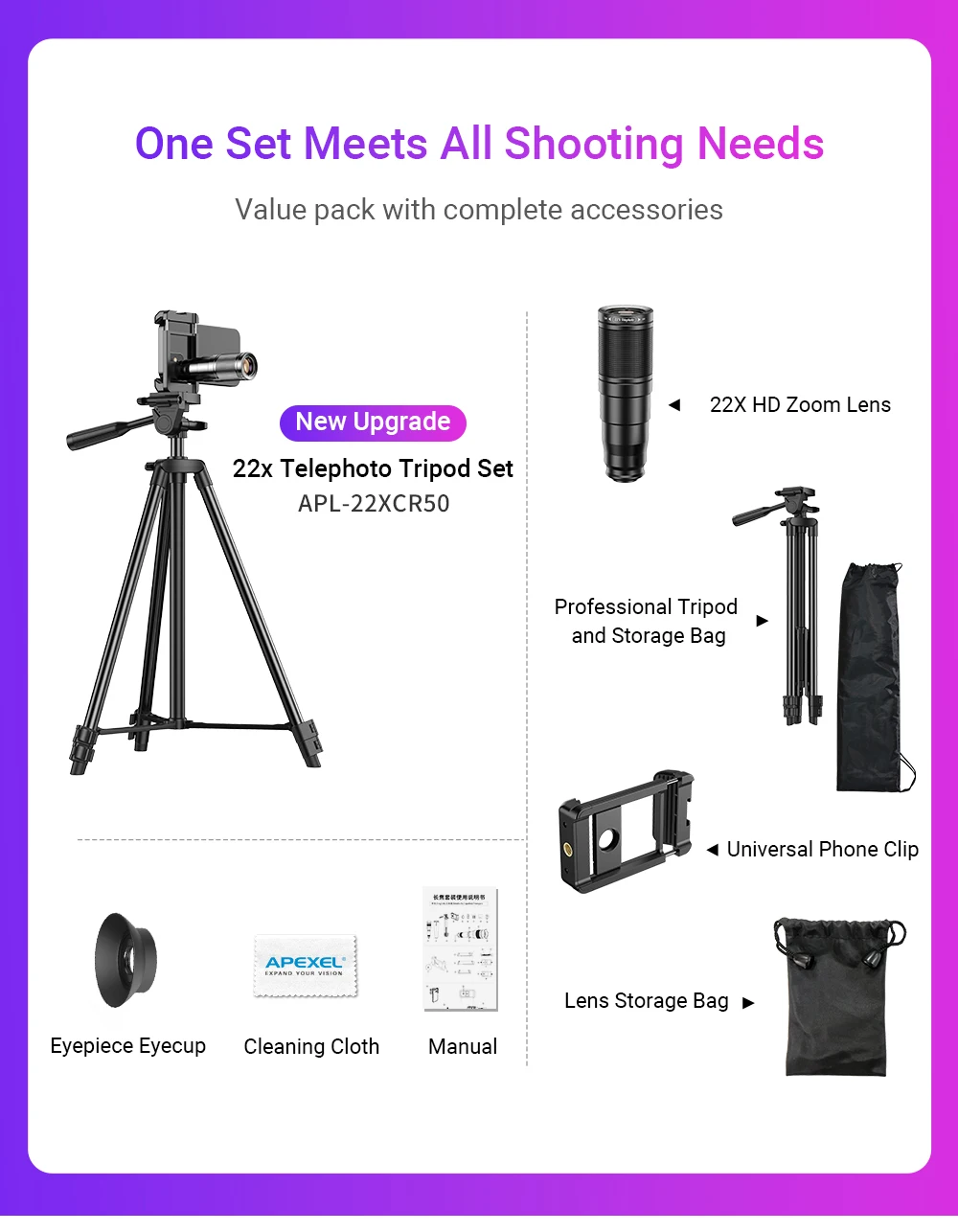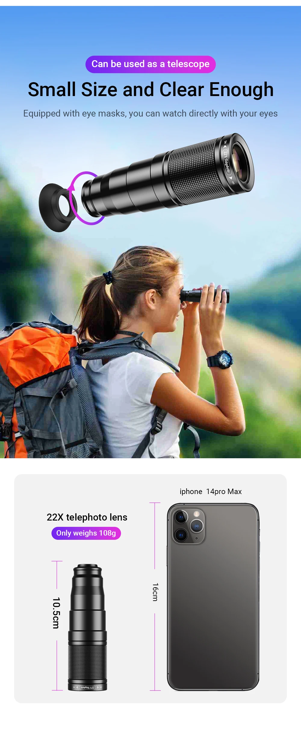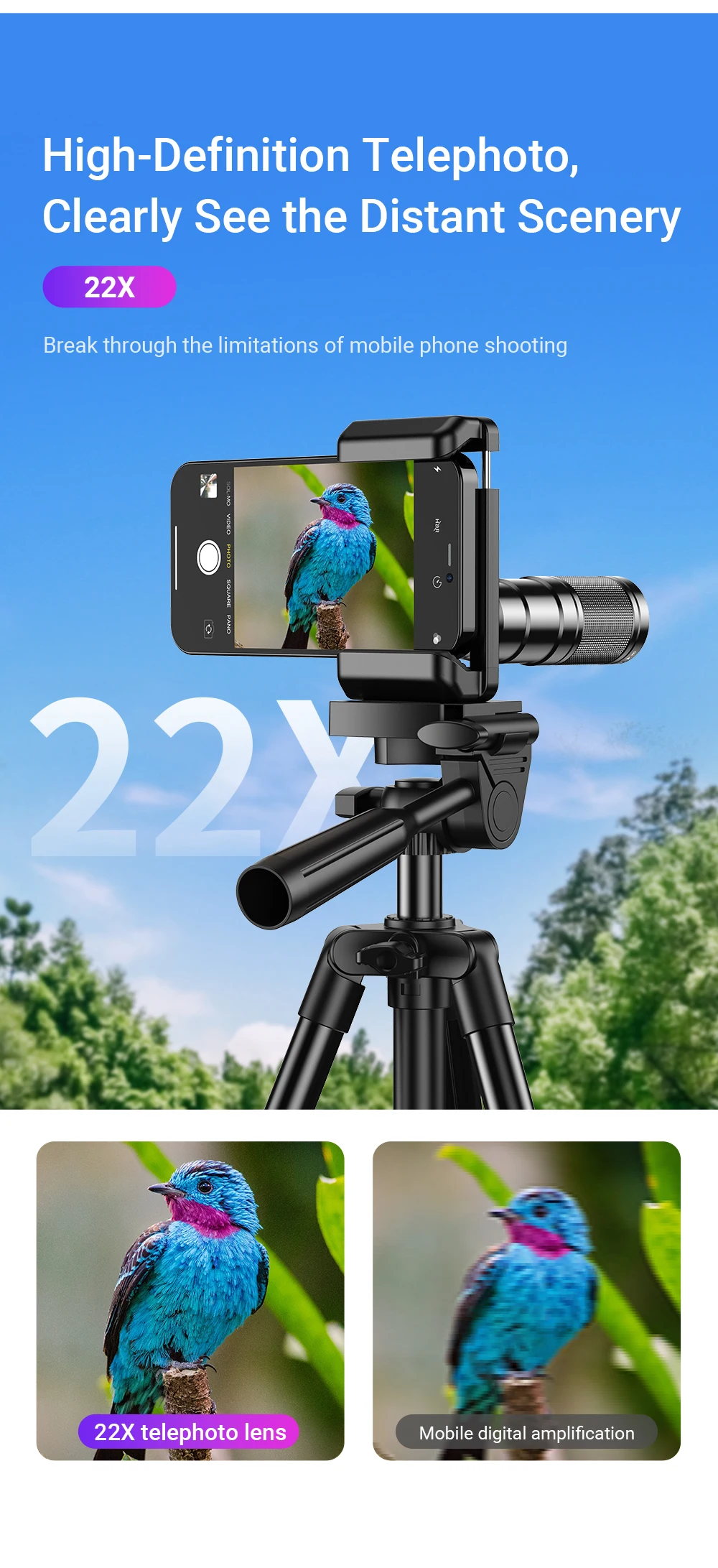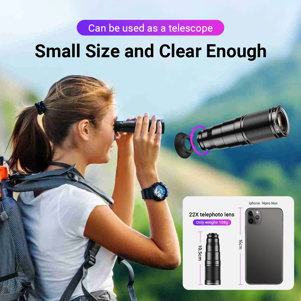 Phone Telescope Lens Kit 22X Telephoto Lens Compatible with iPhone 15 14 13 Pro Max and Android Smartphones