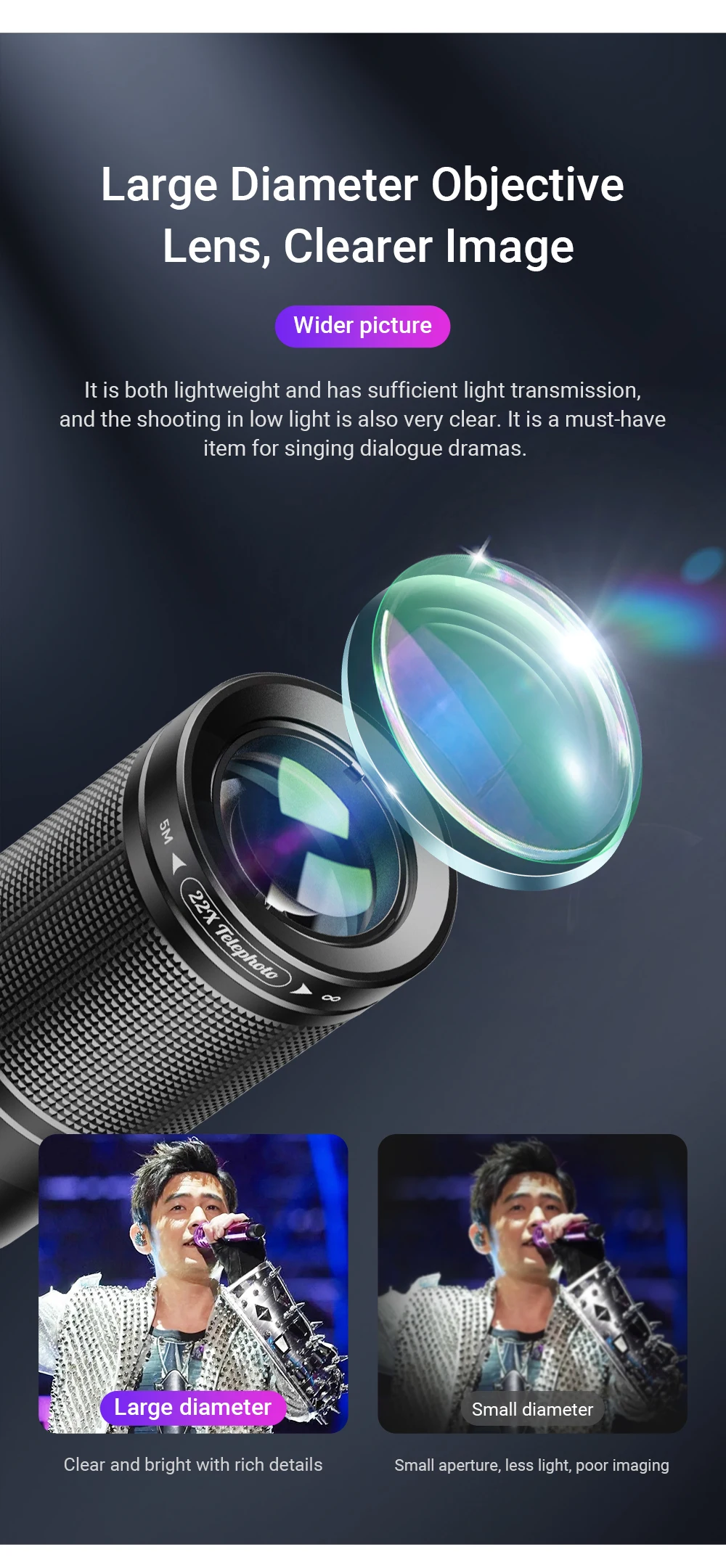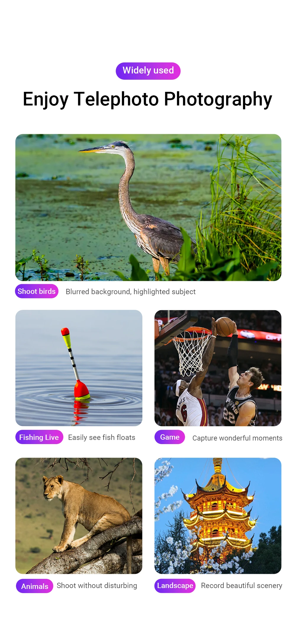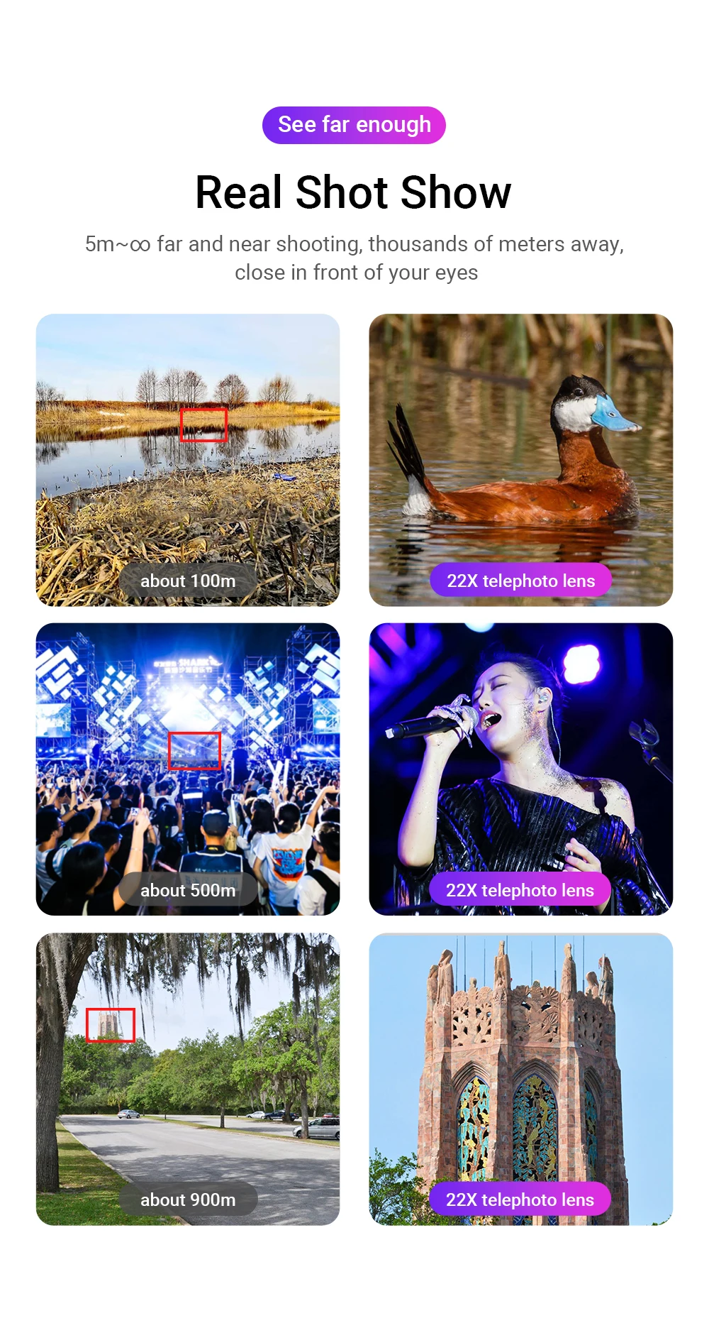 Applications: 22X monoculars for bird watching, concerts, sporting events, fishing, outdoor sightseeing, etc