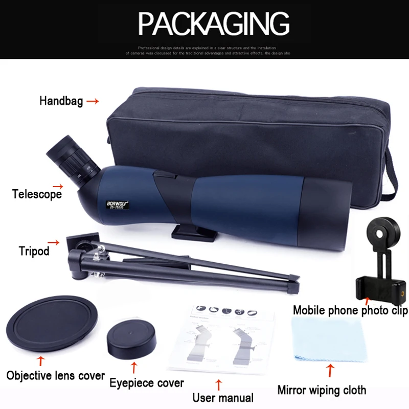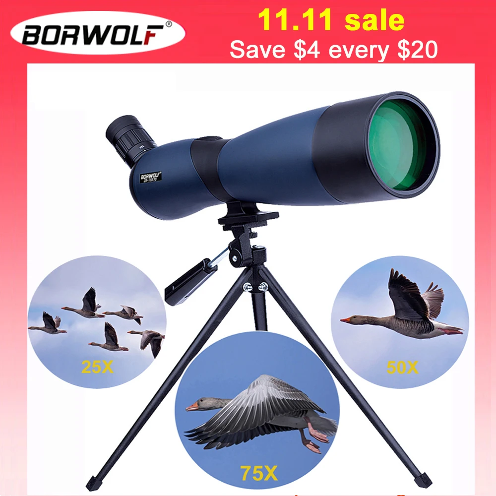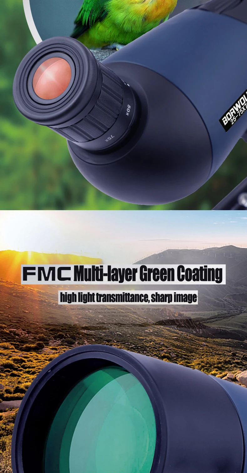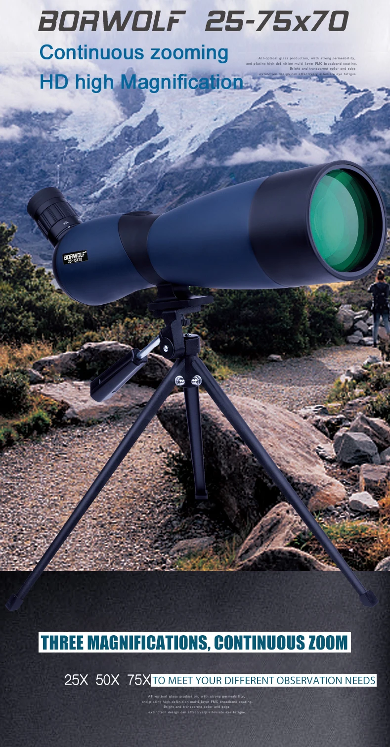 Borwolf 25-75X70 Professional Zoom Telescope Spotting Scope High Magnification HD Binoculars Monocular For Bird Watching