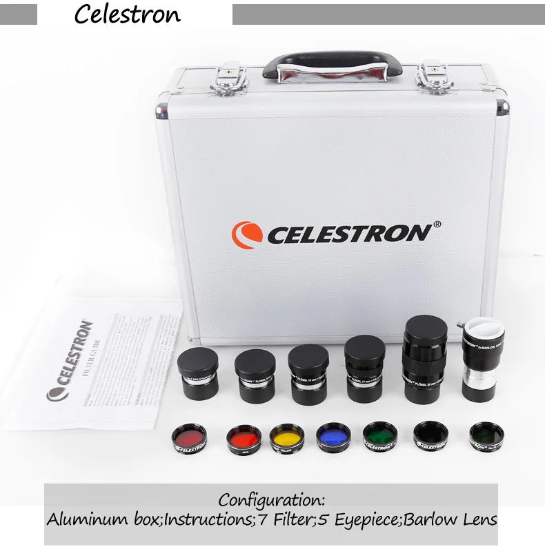 Celestron Set 6/8/13/17/32mm Plossl Eyepiece 2x Barlow Len Planet Moon Filter Astronomy Telescope Accessory Kit by Aluminium Box