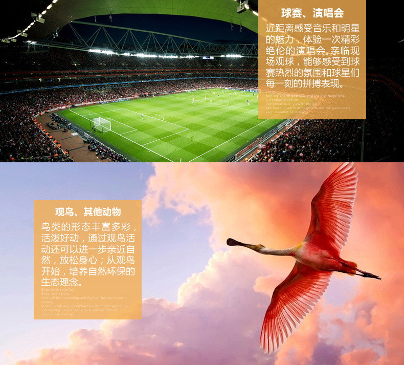 Bird Watching, Sporting Events, Nature & Wildlife, Hunting, Travel & ventures, Concerts & live events, Boating