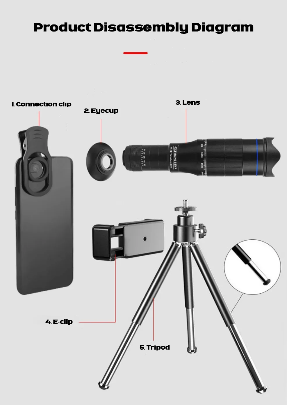 HD 40X Zoom Telescope Telephoto Lens Monocular Phone Camera Lens Mini Metal Telescope Mobile Telephoto Lens For Camping Tourism