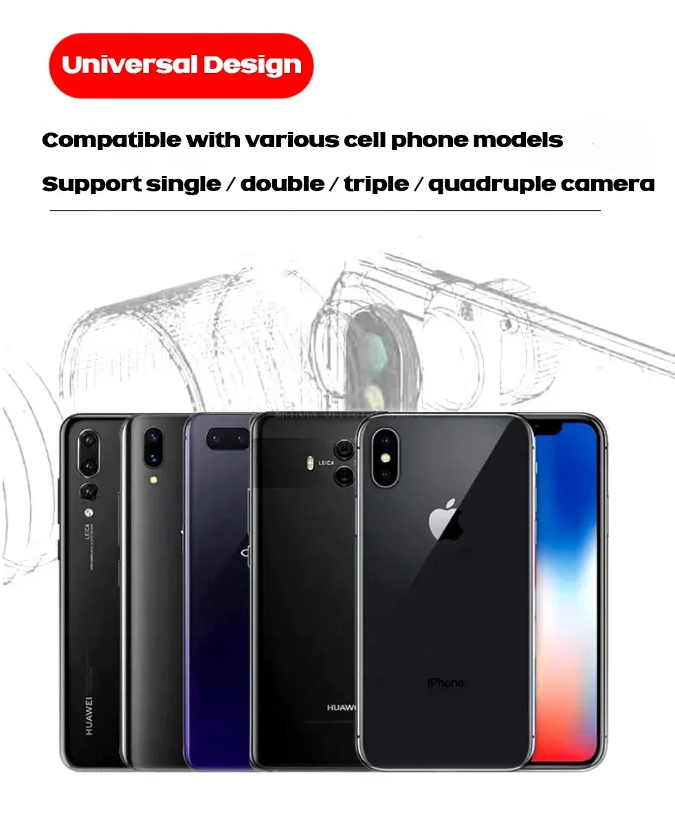 Universal Design Compatible with various cell phone models Support single / double / triple / quadruple camera