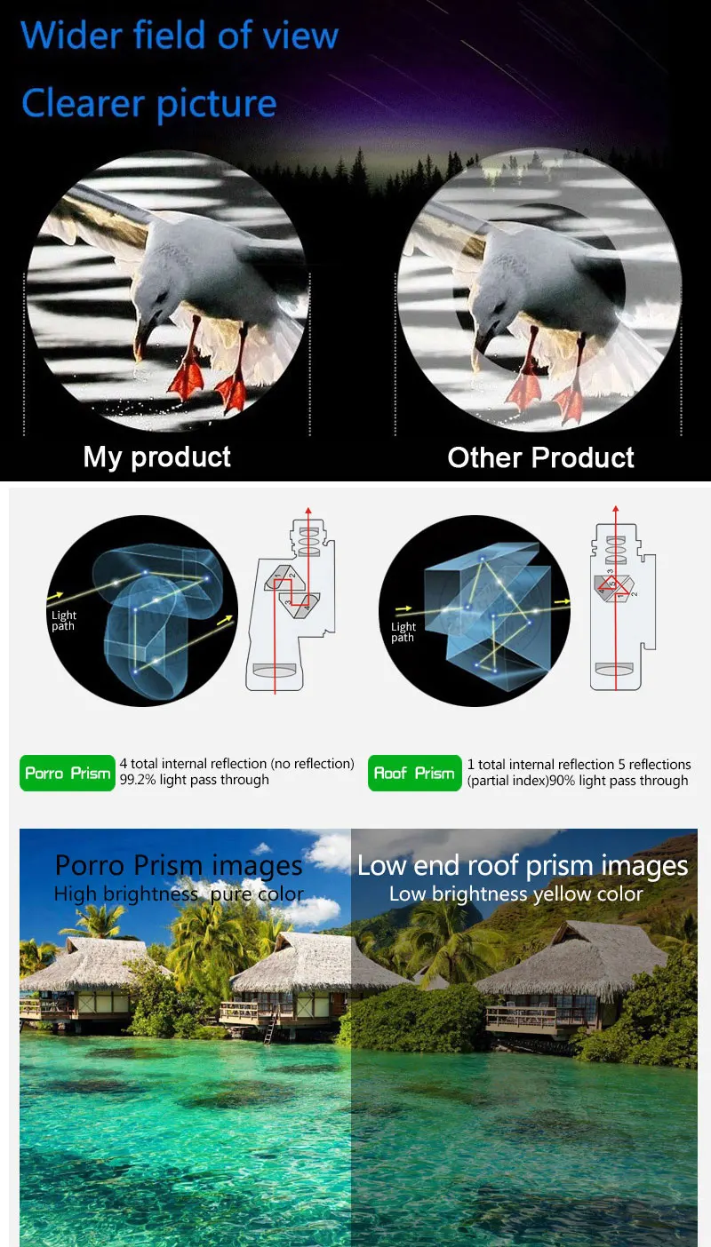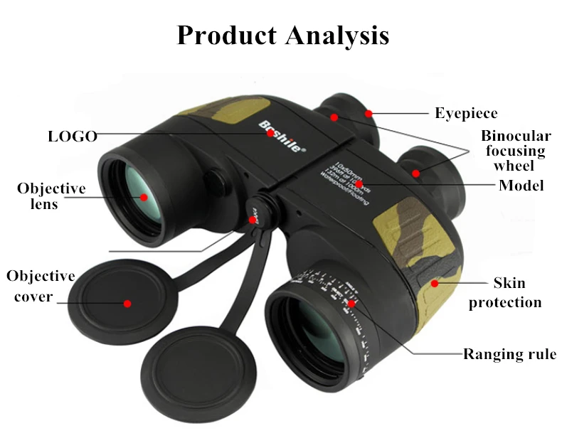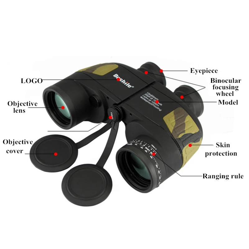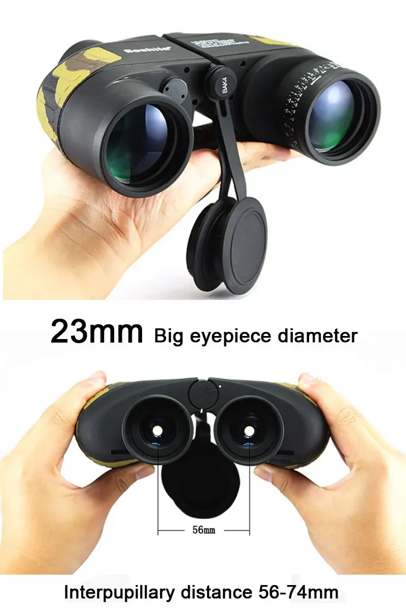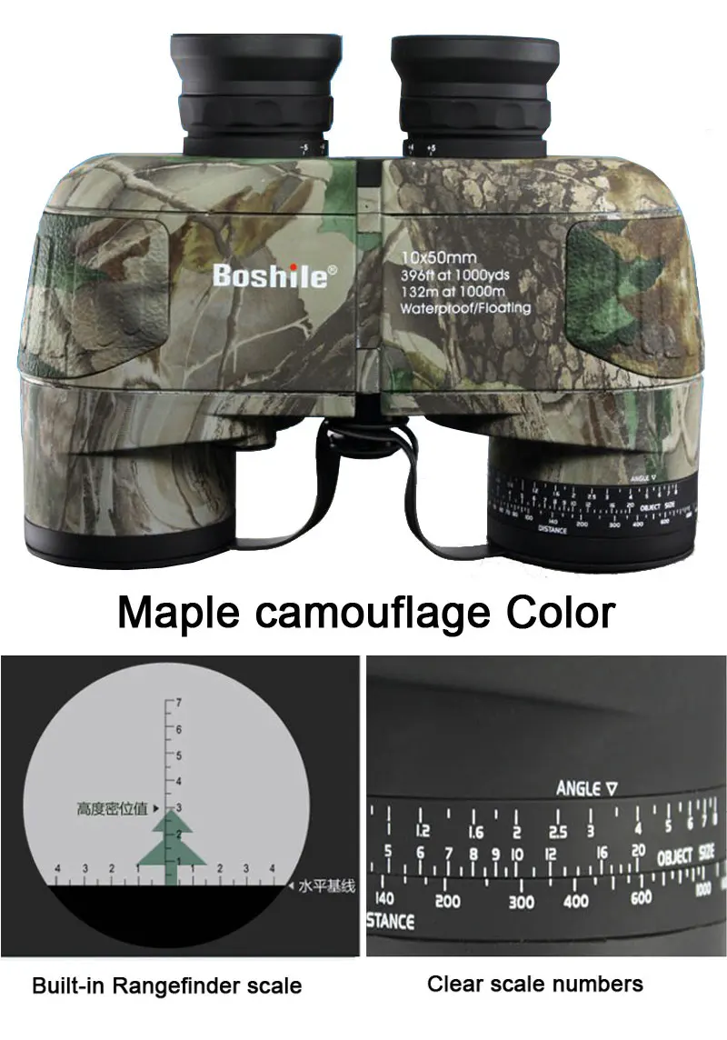 10/7×50 binoculars is a water floating model. It has two ranging tools. The eyepiece Reticle Scale and the Calculator Dial can be used to easily determine your distance from an object if its size is known. The optics is made excellently in order to give the viewer brightness, exacting image clarity and unparallel true color of the image. The user can have confidence whether it is being used in tour, viewing,boating, observation, or any other application.