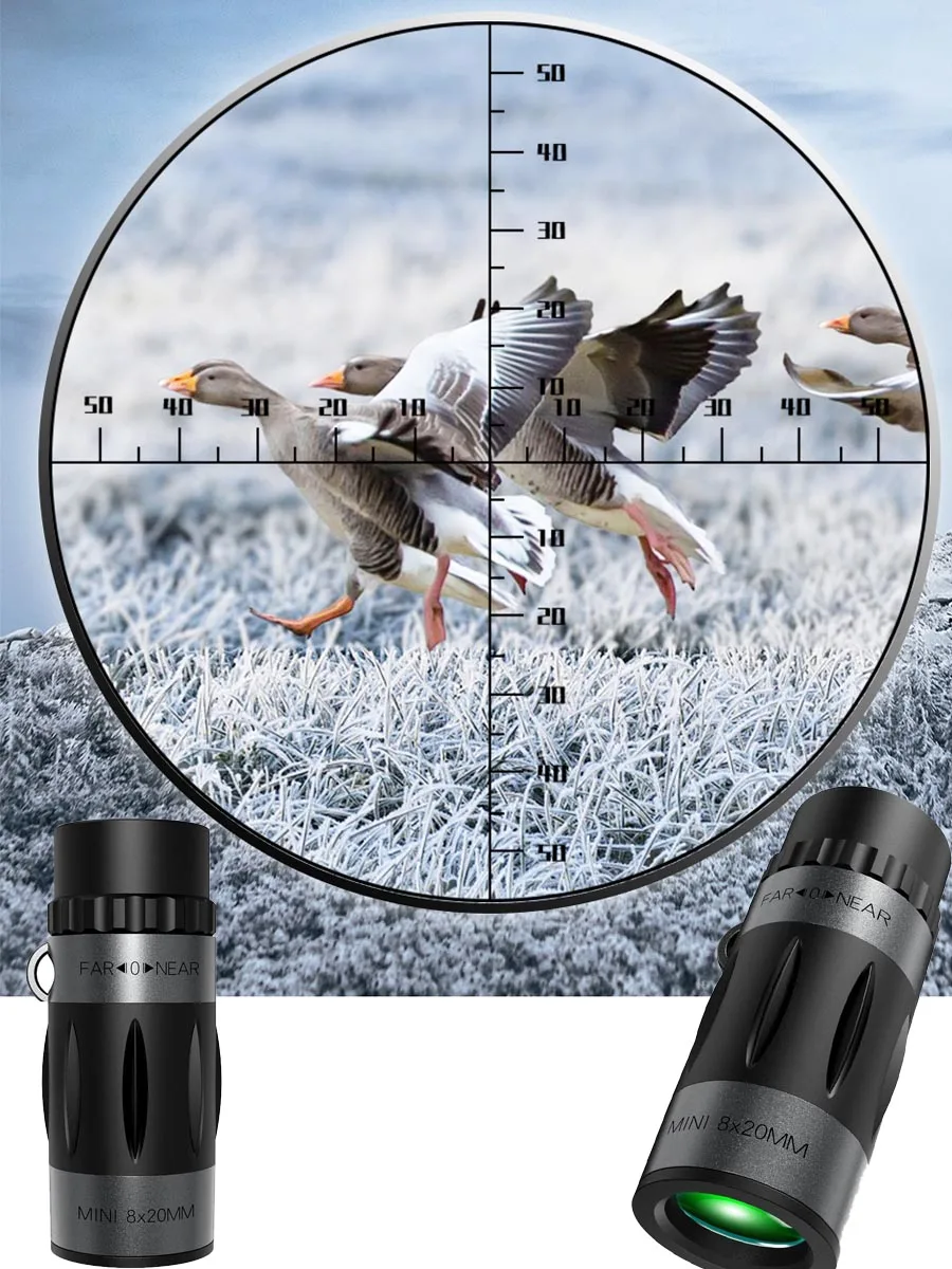 Multipurpose Mini Pocket 8×20 Monoculars Telescope Cross Scale Ranging High Definition Optical Glass for Hunting Camping Hicking