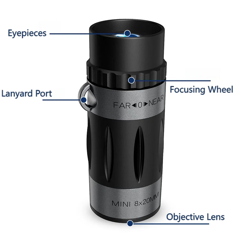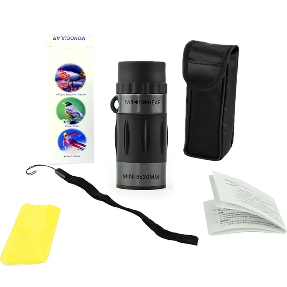 1. Compact and Versatile: The 8×20 monocular telescope is perfect for various outdoor activities like concerts, outdoor activities, bird watching, archery, hiking, camping, boating, rock climbing, water sports, backpacking.