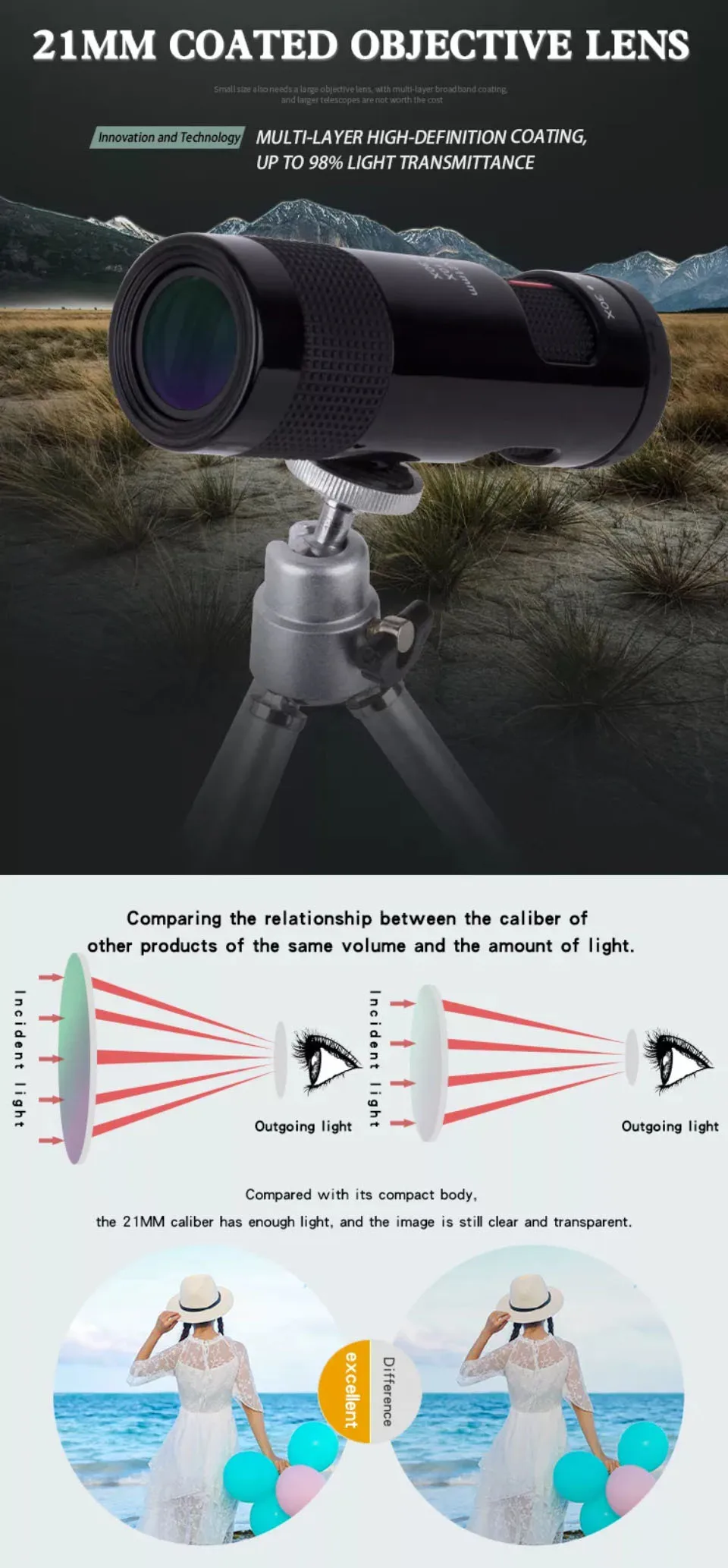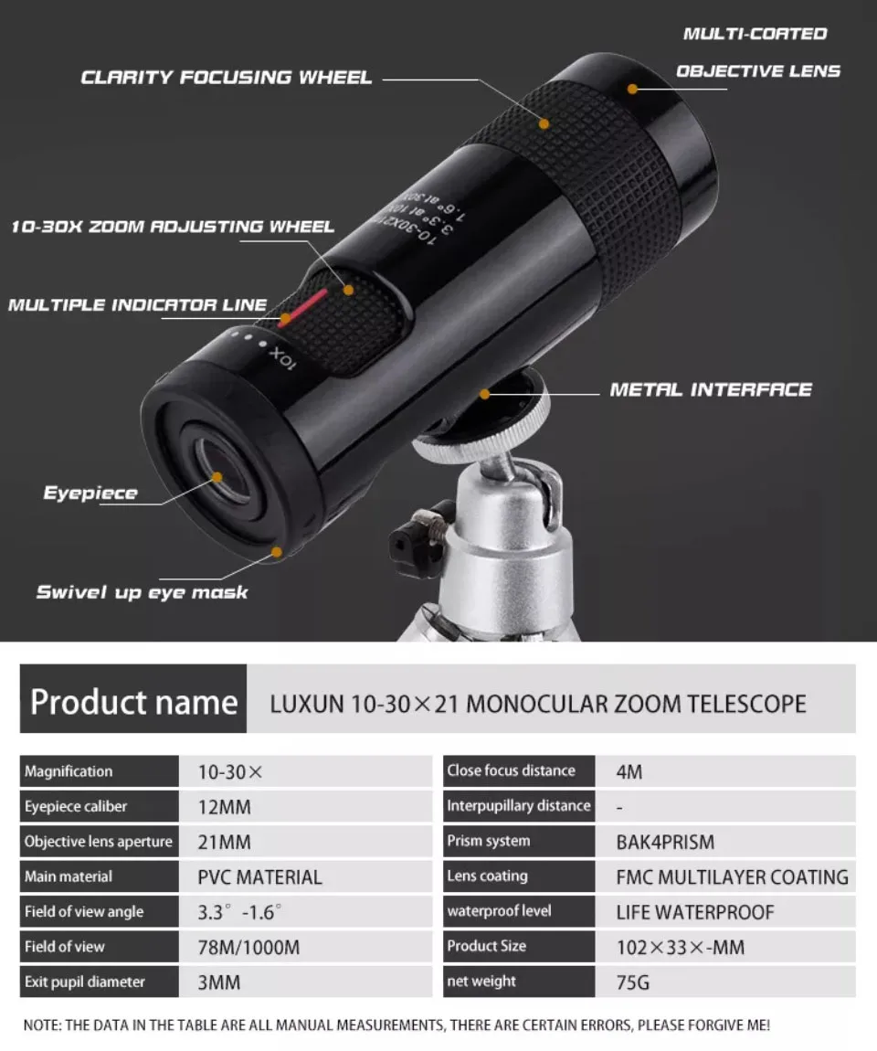 2.Handheld and pocket friendly monocular can always be within reach for when you want to take a closer look at something.