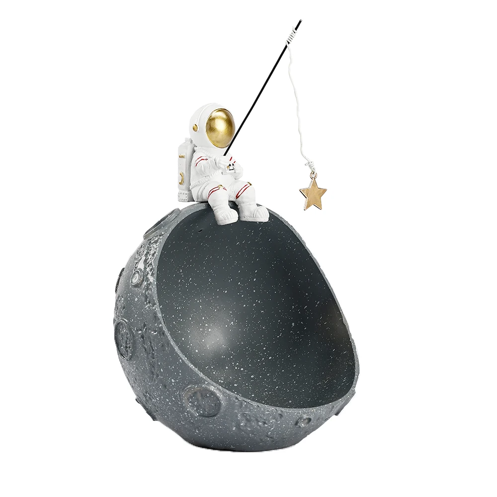 Astronaut Fishing Star Figure Sculpture for Desktop & Tabletop Decor, Resin Spaceman Planet Desk Ornament for Outer Space Themed Bedroom Decor, in Storage Box Bowl Organizer for Home Office Table Decoration