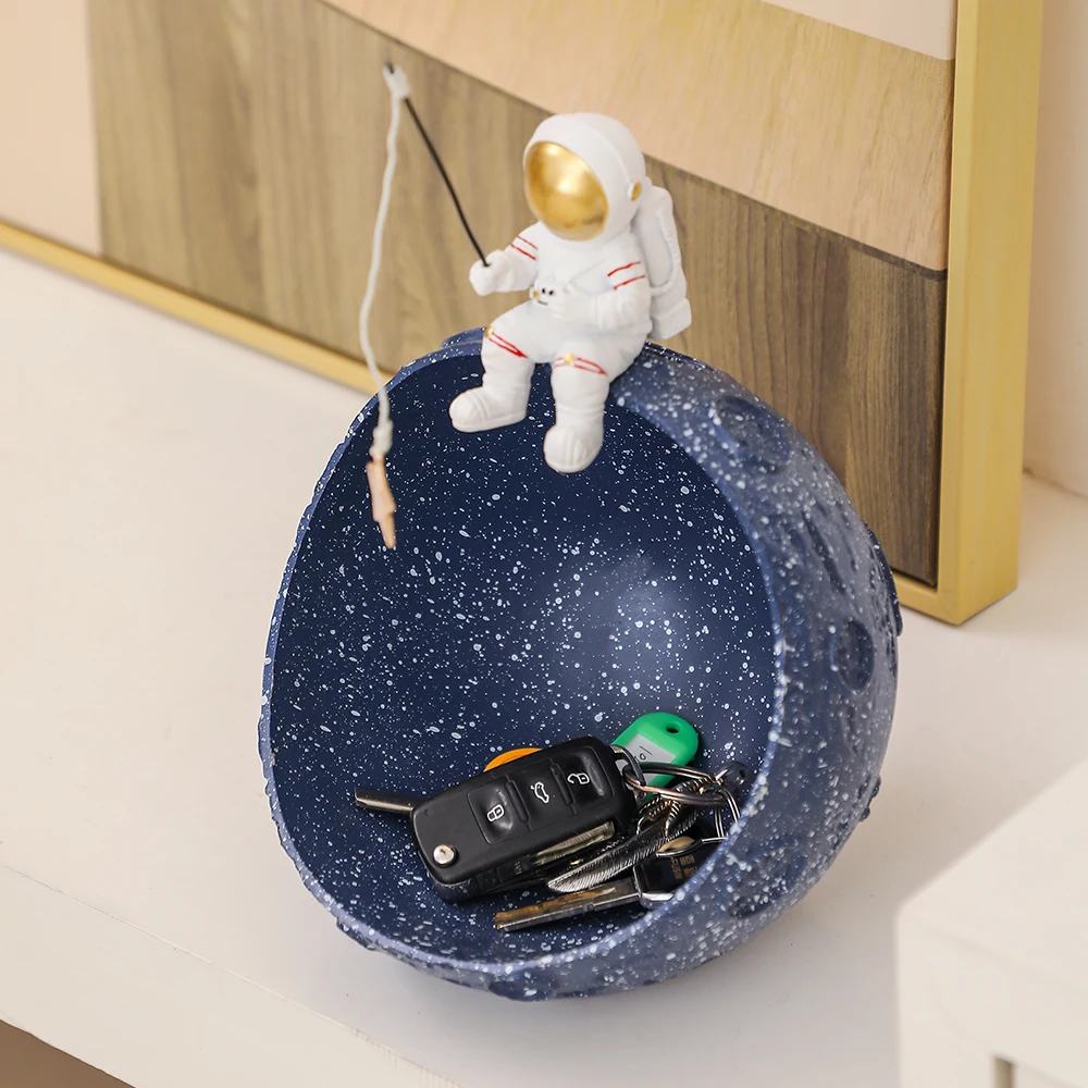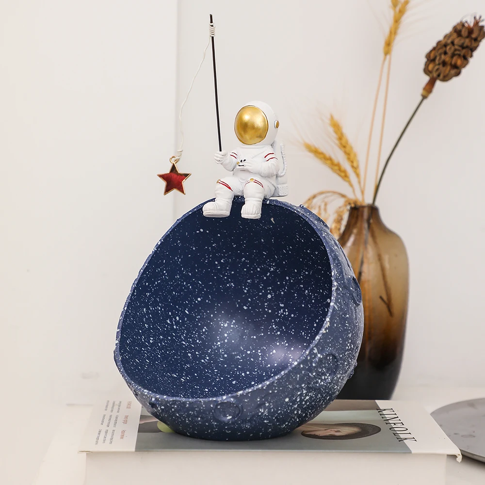 Resin Spaceman Planet Desk Ornament for Outer Space Themed Bedroom Decor in Storage Box Bowl Organizer for Home Table Decoration