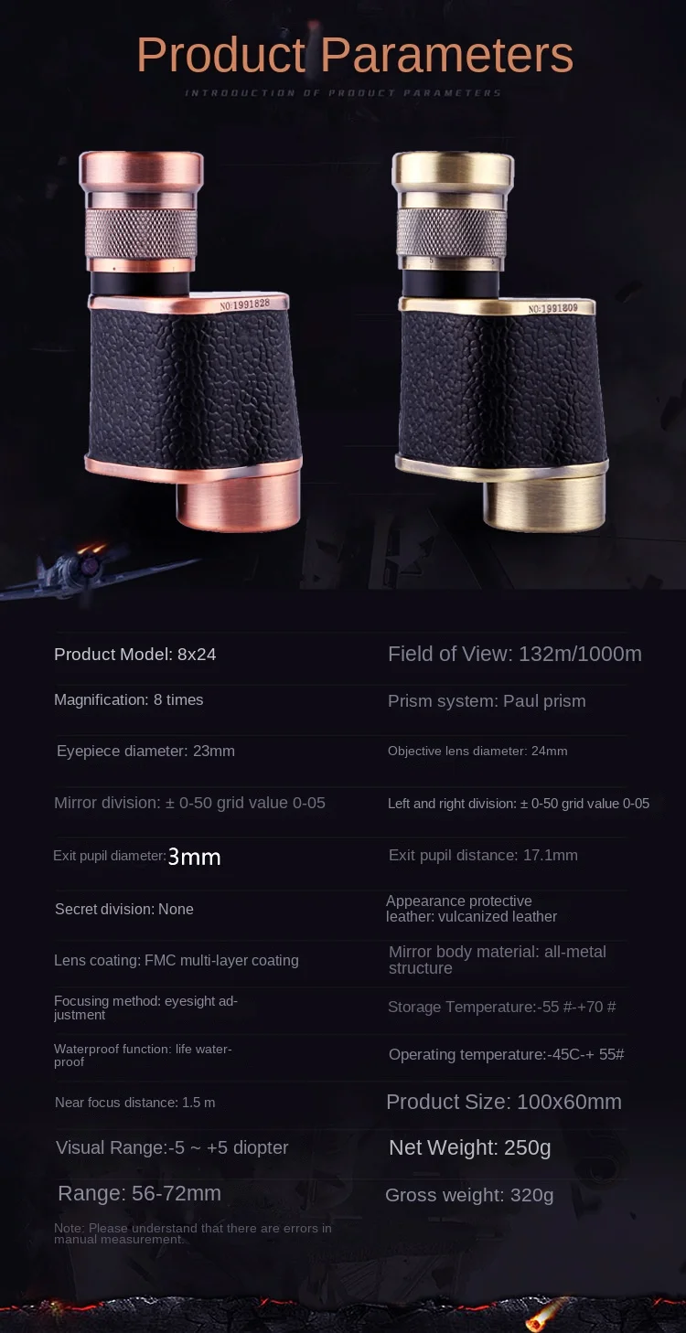 Russian Powerful Monoculars 8X24 Telescope Metal Structure Professional Portable Military Telescopio All Optical Len For Camping
