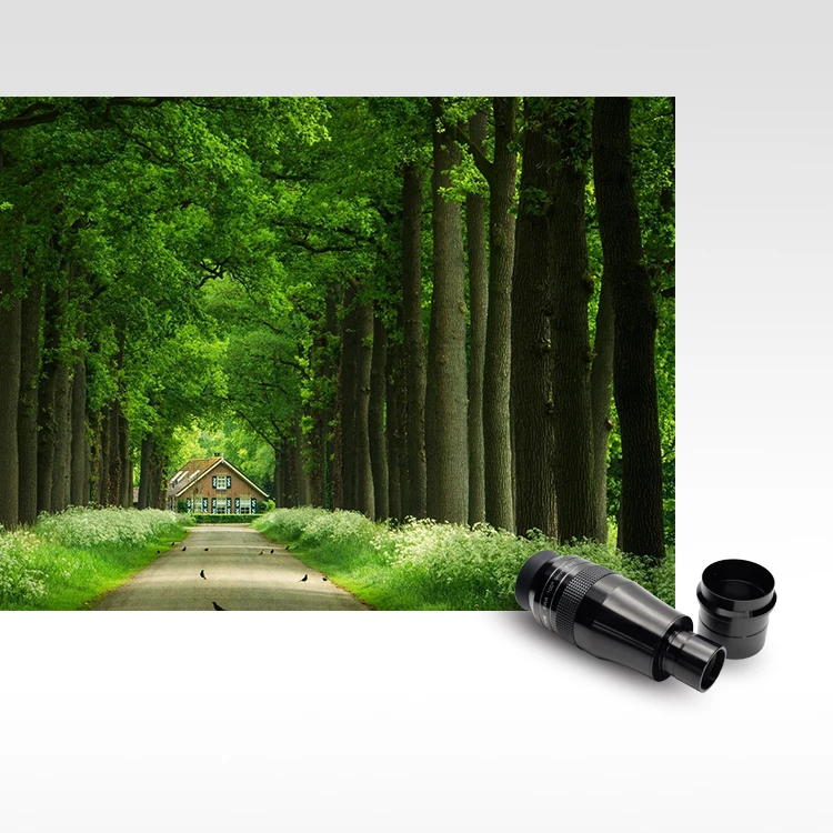 XWA7mm eyepiece has a large field of view of 100 degrees, and the lens are coated FMC, which can effectively reduce color difference. The blackening edge of the lens can effectively control the stray light transmission. Each eyepiece is equipped with a 2-inch to 1.25-inch adapter, which is more convenient to use.