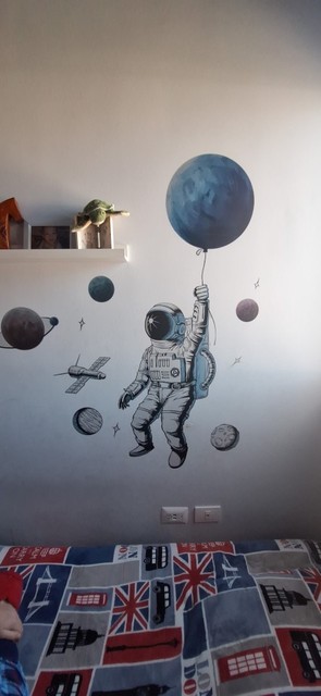 Space Theme Astronaut Wall Stickers For Kids Room Background Wall Decor
