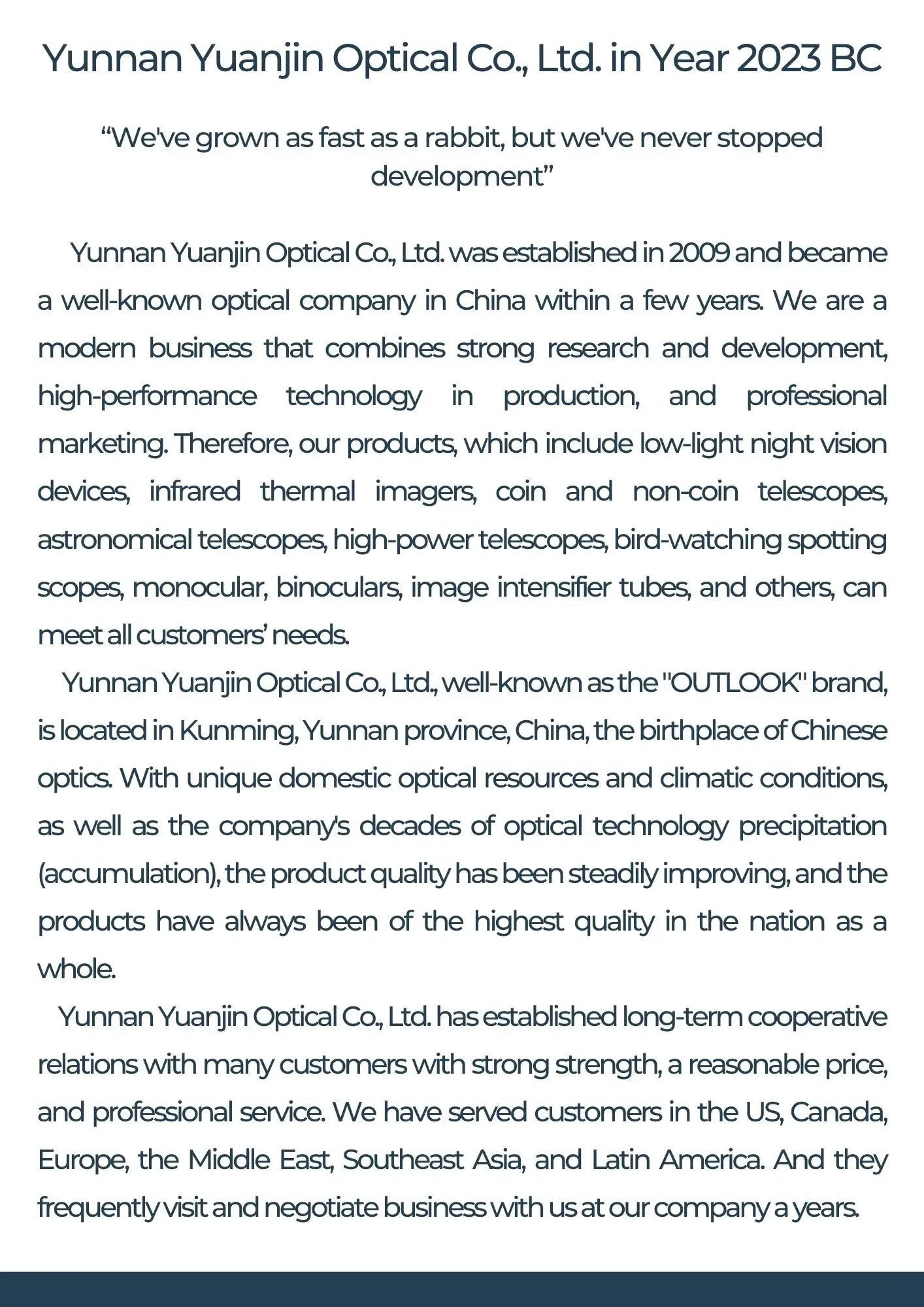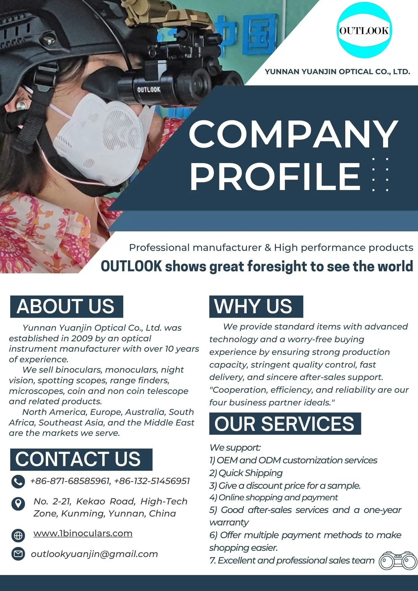 Based on a long-established military optical instrument factory , we provide our customers with decades of industry know-how,
