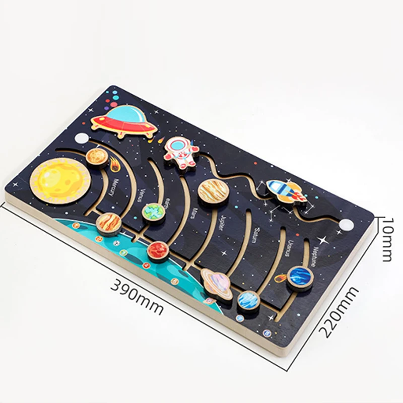Wooden Solar System Cognitive Game Colorful Sun Earth Space 9 Planets Science Toys For Children Training Educational Toy Gift