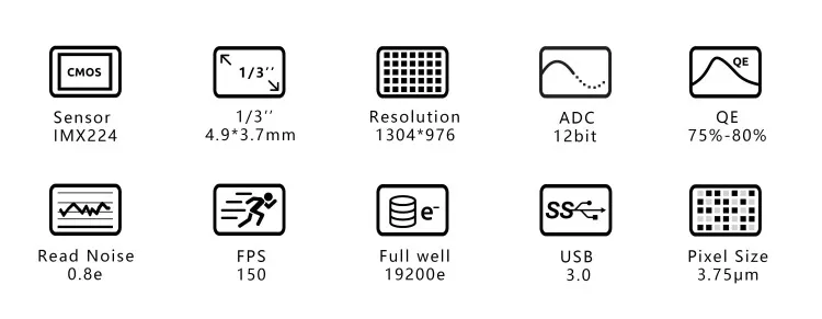 Super Low Read Noise less than 1e which can compare with sCMOS or EMCCD sensors